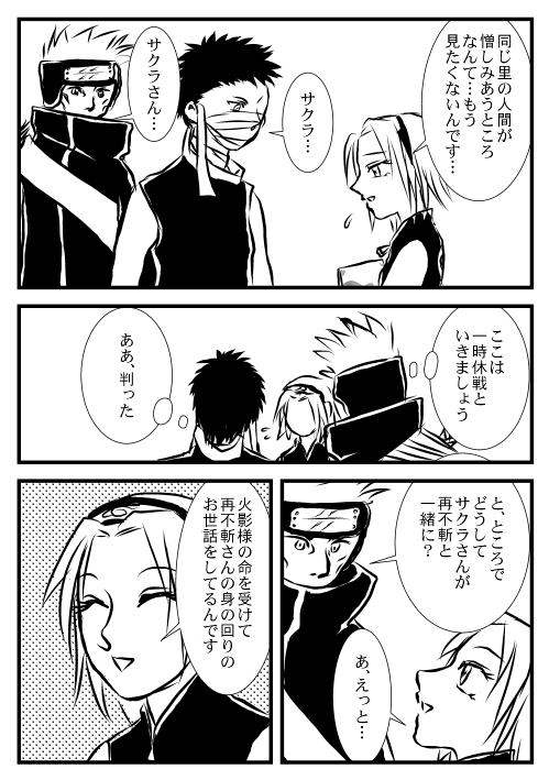 でも二部設定なら再不斬さん、そろそろ手を出してもいいんじゃ…と思わなくもないですが、きっと色々な方が目を光らせているのでしょう。