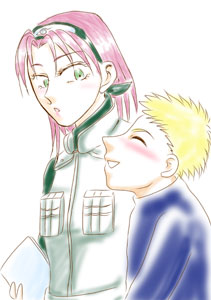 | 六代目火影となったナルトだが、デスクワークを嫌って勝手に任務に出掛けてしまう。サクラはそんなナルトを叱りつつ、きっちりとフォロー。 家に変えるとサクラの方がナルトに甘えたり。 |